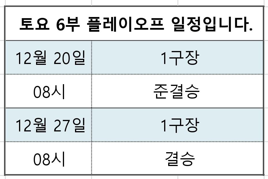 토요 6부 플레이오프 일정 입니다.