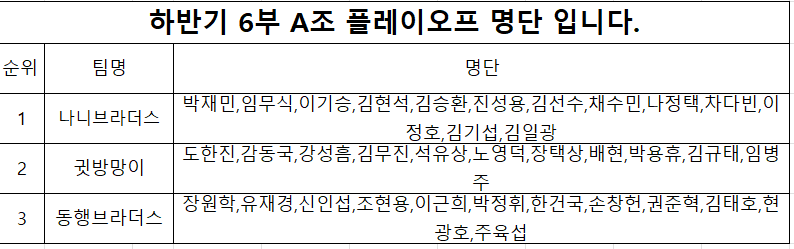 하반기일요6부 A조 플레이오프 일정 입니다.