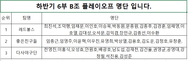 하반기일요6부 D조 플레이오프 일정 입니다.
